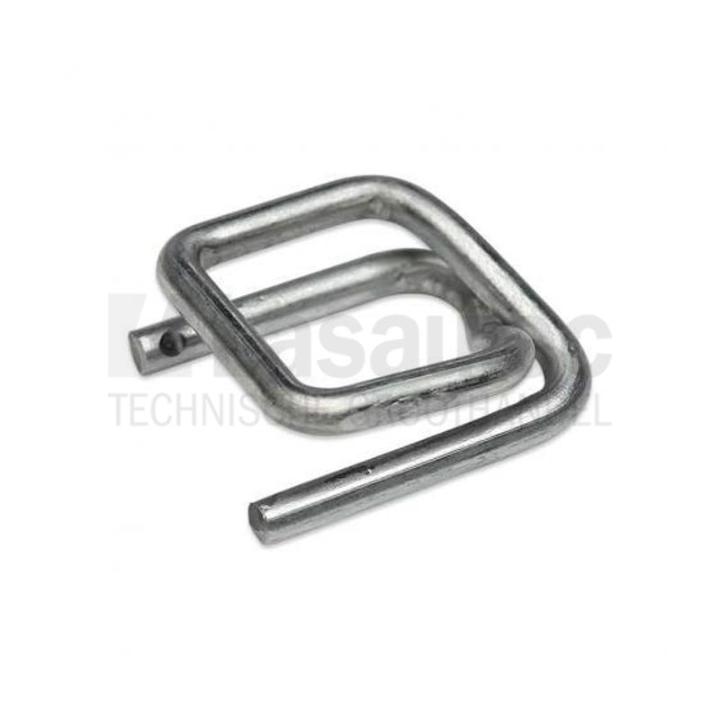 Deze metalen gesp wordt gebruikt om polyester band, textielband en PP omsnoeringsband of composietband aan elkaar te bevestigen. Door de stugge omsnoeringsband door de gesp te lussen, met de handspanner aan te trekken, ontstaat een enorm sterke verbinding, die gemakkelijk alle trekkrachten tot 1000daN kan weerstaan.