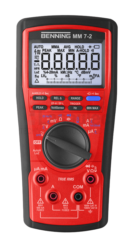 • Optische en akoestische bux controle (µA/mA- en A-gebied) met waarschuwing bij verkeerde meetbereikkeuze