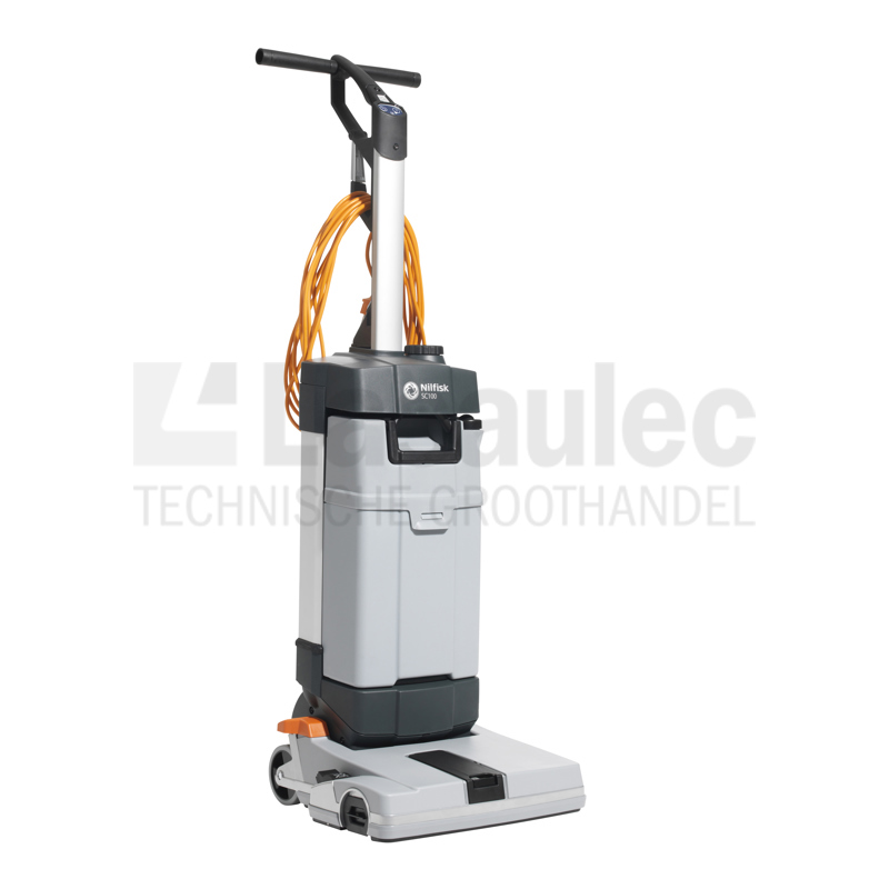 De Nilfisk SC100 is een compacte schrobzuigmachine voor de reiniging van krappe ruimten. Vergeleken met de handmatige reiniging met de traditionele mop is dit de snelste oplossing voor de reinigingsklus.