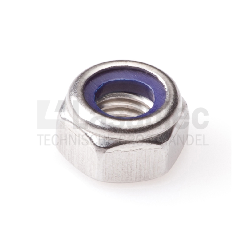 Zeskantmoer metrisch zelfborgend met kunststofring.