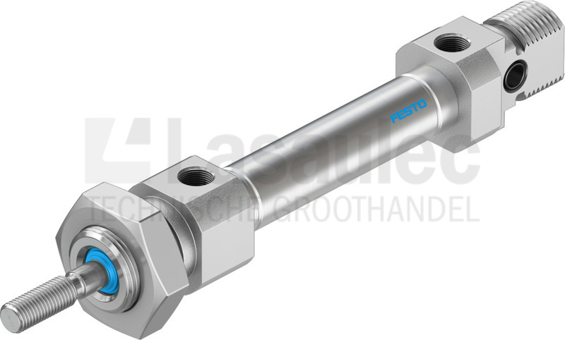 Festo normcilinder dubbelwerkend met elastische dempingsringen/-platen aan beide zijden.