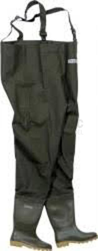 Waadpak, 700 gr, licht elastisch, vervaardigd van PVC/polyester met elastische bretels voorzien van klik gesp. Borstzak aan de binnenkant. Zachte, polyester voering. Robuuste profielzool. Wasbaar tot 40 °C.
