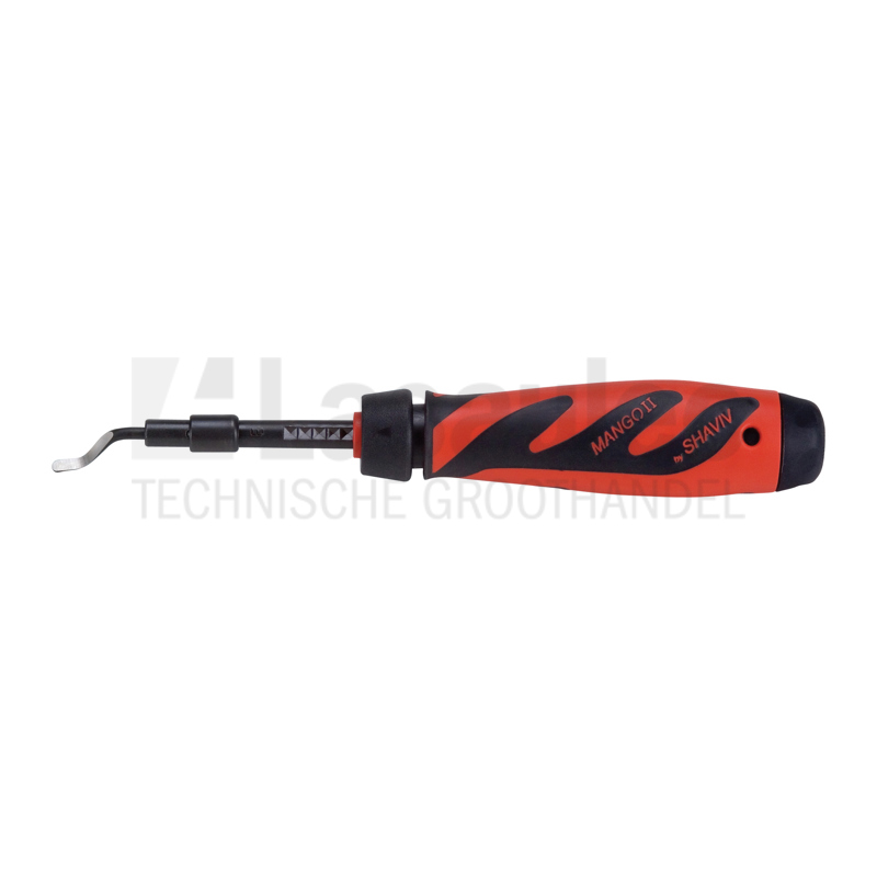 Set bestaande uit een handontbramer en mesjes, geschikt voor zwaarder ontbramen. Samengesteld uit een Mango II handgreep voorzien houder E, mesjes E100, E200 en E300 .