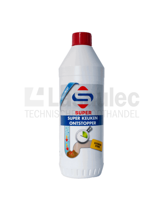 Super Ontstopper is de krachtigste ontstopper voor consumenten. Dit product lost alle organische verstoppingen op zoals: Haar, papier, kalk, etensresten, zeep, vet, koffiedik, enz. De ontstopper tast geen lood, koper of pvc-afvoersystemen aan. Advies: Bij preventief gebruik wordt een beschermende laag in de leidingen aangebracht, zodat verstoppingen minder snel voorkomen.