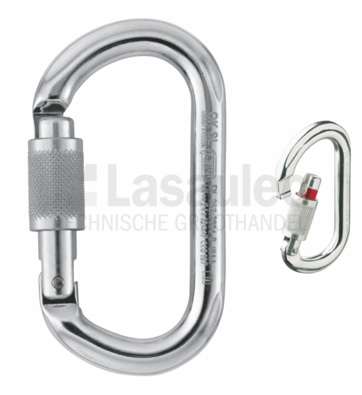 Karabijnhaak met een symmetrische en ovalen vorm voor gebruik met katrollen. Voorzien van een manueel SCREW-LOCK vergrendelsysteem en een Keylock sluitsysteem. Een rode indicator laat u weten wanneer de karabiner ontgrendeld is. Ook geschikt voor klimmen omdat de vergrendeling gemakkelijk met één hand te openen en sluiten is.
