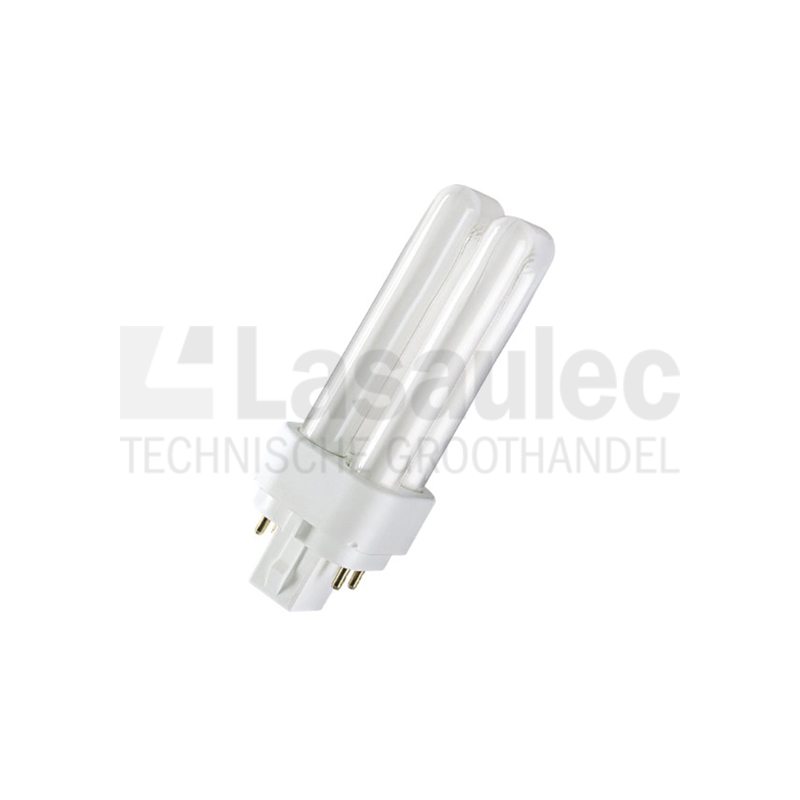 De Osram Dulux D/E is enkel te gebruiken in combinatie met een elektronisch voorschakelapparaat. De lichtbron is dimbaar. U herkent de Osram Dulux D/E eenvoudig aan de G24q-2 lampvoet met 4 pinnen. Met een levensduur van 20000 gaat de Osram Dulux D/E erg lang mee en is vervanging minder vaak nodig.