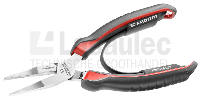 Ergonomische handgrepen uit bi-materiaal, bestand tegen chemische stoffen, met:- Terugstelveer- Ophangoog(het ophangoog vermeerdert de nominale lengte met 10 mm)