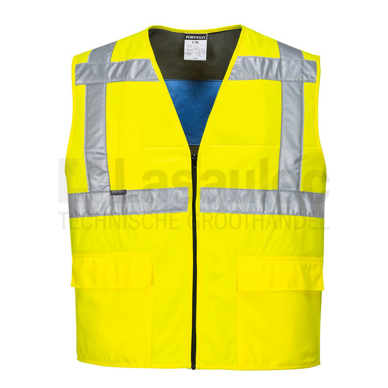 Dit vest is gemaakt van materiaal dat speciaal is gemaakt voor lichaamskoeling. Deze constructie is bedoeld om de schadelijke gevolgen van hittestress tegen te gaan. Dit vest verlaagt de lichaamstemperatuur en kan binnen enkele minuten opnieuw worden afgekoeld, waardoor u urenlang kunt afkoelen zonder de mobiliteit in gevaar te brengen. De pasvorm van dit vest is ontworpen om je taille te verwijderen, zodat je gemakkelijk kunt zitten of staan.