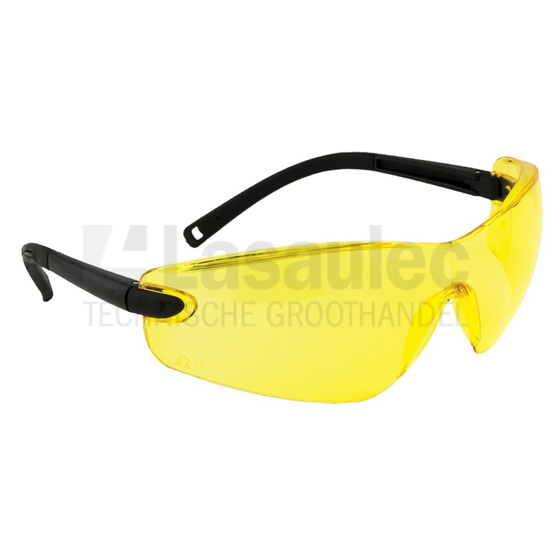 Deze veiligheidsbril zonder frame is ontworpen met veiligheid, comfort en stijl in gedachten. Met zachte rubberen poten en ingebouwde neusbrug en wenkbrauwbescherming.