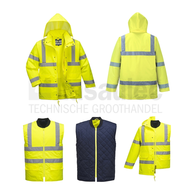 Een zeer innovatief en functioneel jack dat aan alle eisen en relevante normeringen binnen de Hi-Vis lijn voldoet. De waterbestendige buitenkant van dit kledingstuk geeft bescherming tegen nat weer. Dit jack is inclusief een bodywarmer model S469.