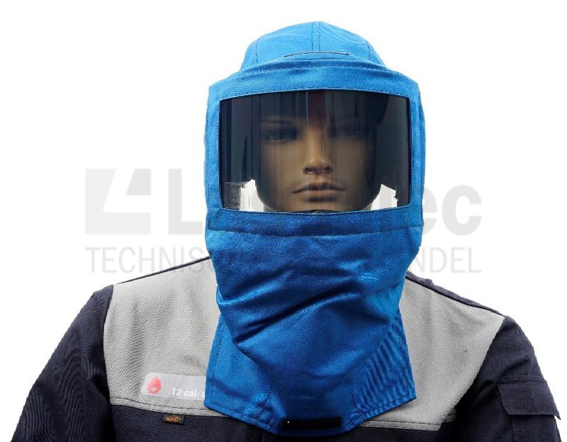 Gelaatsbeschermkap tegen vlambogen voor de elektromonteur met doorlopende flap.