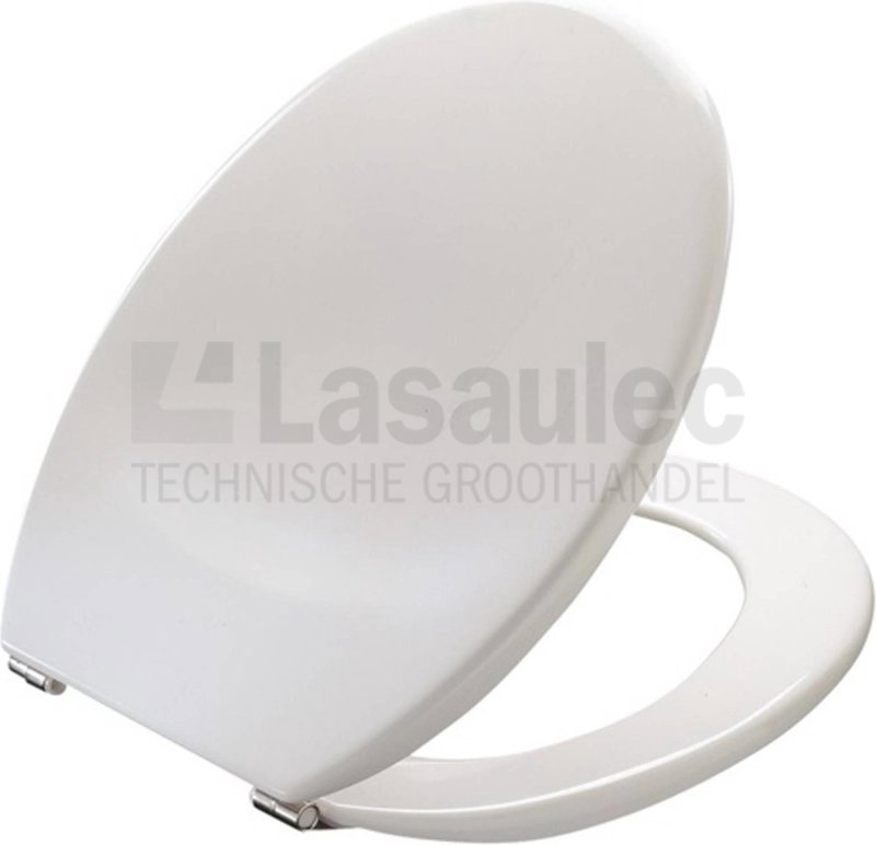 Pressalit Objecta closetzitting, wit, met deksel, voor universele toiletpot, hartafstand schroefdraden 155mm, scharnierpoot/rozet roestvaststaal (RVS), zitting/deksel duroplast, scharnierbladen roestvaststaal (RVS), glansgraad glanzend, scharnierpootbevestiging aan zittin scharnierbladen