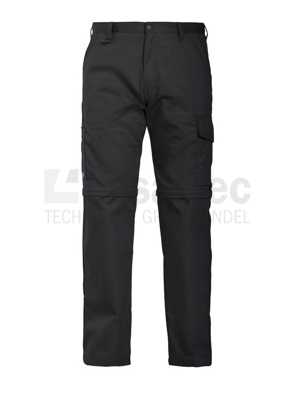 Werkbroek, afrits model, van lichtgewicht polyester katoen en voorzien van twee steekzakken waarvan de rechter afsluitbaar met rits, D-ring, twee achterzakken, twee ruime dijbeenzakken met onderverdeling en afritsbare broekspijpen.