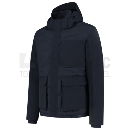 Het puffer jack heeft een comfortabele ribkraag in de hals. Ook de manchetten zijn voorzien van een ribmanchet. De capuchon heeft een uitsparing aan de zijkant voor extra zicht en is volledig afneembaar middels drukkers. Met de verdekte koordstopper kun je de capuchon verstellen. Aan de binnenkant van de werkjas zit een uitneembare rib windvanger met antislip elastiek. De onderkant van de werkjas is verstelbaar middels het koord aan de binnenzijde. Er zijn voldoende opbergmogelijkheden: twee binnenzakken, borst