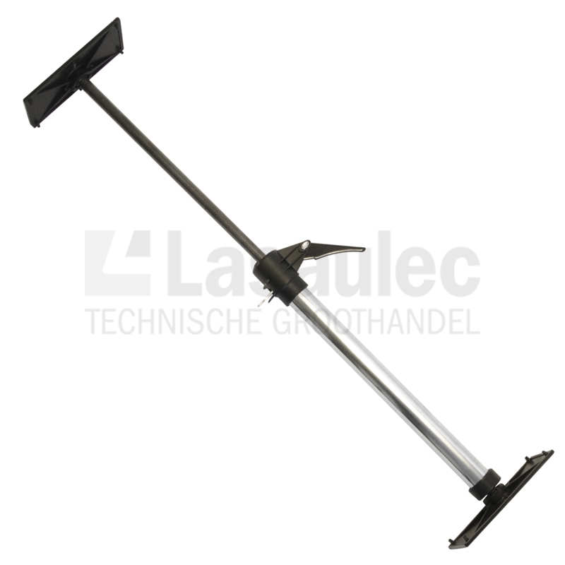 Handmatig op hoogte brengen en vastzetten. Een solide rubberen plaat aan beide uiteinden van de telescoopstang zorgt voor een stevige grip tijdens het vastzetten. Voorzien van kogelgewrichten voor diagonaal gebruik.(tot hoek 50°).