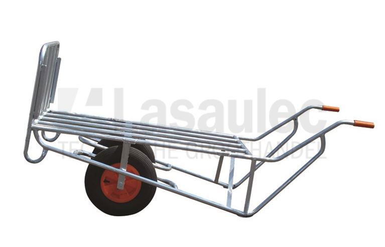Tweewielige en stabiele ramenwagen van VABOR, met gelast en robuust frame gemaakt uit een ronde buis. Ideaal voor het vervoeren van agrarische volume materialen.