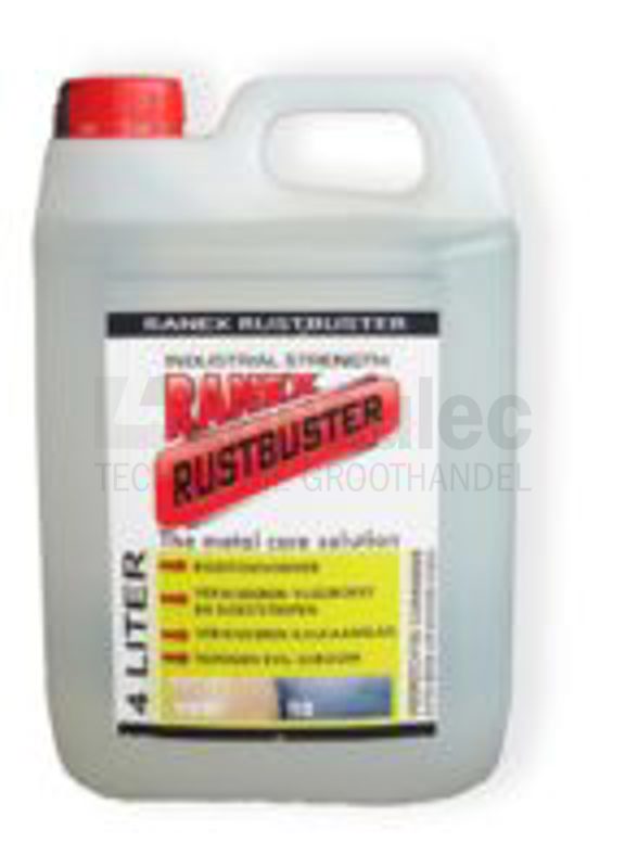 Ranex Rustbuster is een industriele roestverwijderaar, voor zowel bedrijven als voor de doe-het-zelver eenvoudig te gebruiken. Vaste roest, putroest, vliegroest en roeststrepen worden tot in de kern op efficiënte wijze vernietigd en verwijderd. De chemische oppervlaktebehandeling is een bijzonder goed alternatief voor stalen en schuren. Het product staat voor een efficiënte en hoogwaardige werking en een tijdelijke conservering in één behandeling. Het resultaat na behandeling is een roestvrij oppervlak en geeft een zeer goede hechting aan primer en coating.