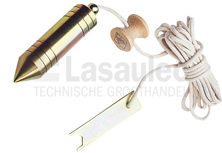 Het gewicht van het schietlood is cilindervormig en 600 gr.