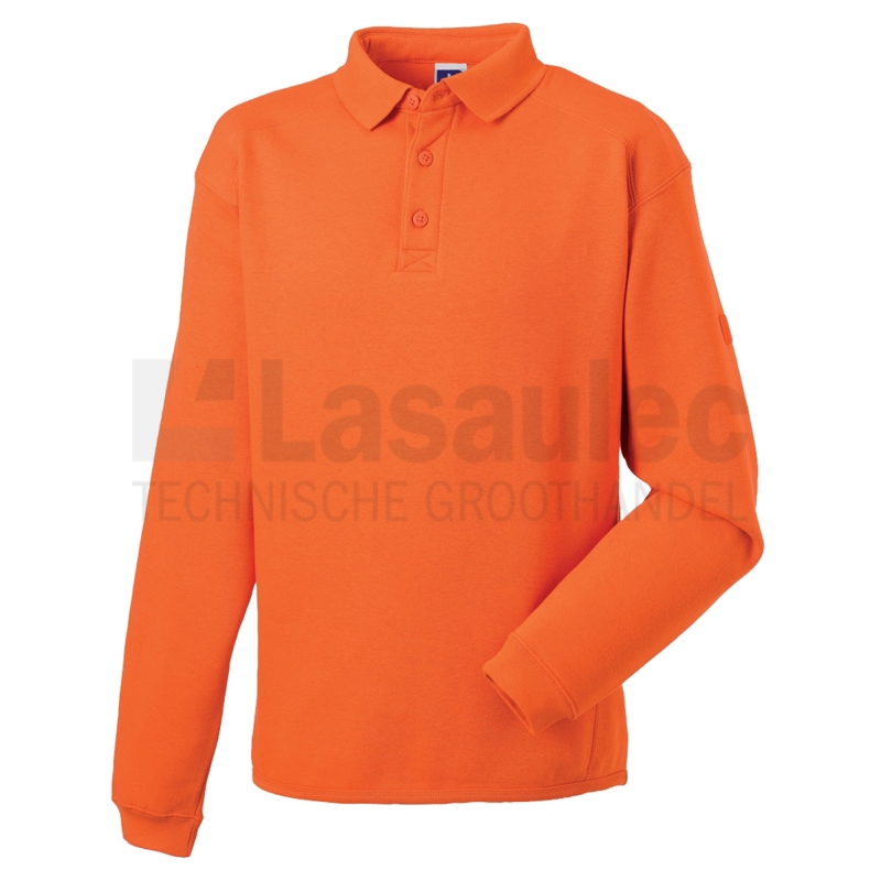 Sweatshirt voorzien van lange mouw, polokraag, dubbel gelaagde schouder panelen, verlengd rugpand voor betere bescherming, zijpanelen voor meer bewegingsvrijheid, elastische penhouder op bovenarm, metalen geplastificeerde knopen voor voedselindustrie en Spotshield vuilafstotende behandeling. Wasbaar op 60 graden.
