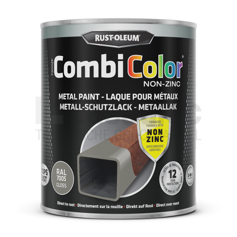 CombiColor Non Zinc wordt gebruikt op blanke, handontroeste of met CombiColor Non Zinc Primer gegronde staaloppervlakken. CombiColor® Non Zinc is speciaal bedoeld om met de kwast of roller aangebracht te worden en kan ook met verfspuit aangebracht worden. CombiColor Non Zinc biedt bescherming tegen corrosie bij matige industriebelasting. Voor metaalconstructies in een meer agressieve industriebelasting is bijplekken of geheelgronden met RUST-OLEUM CombiColor Non Zinc Primer aan te bevelen.