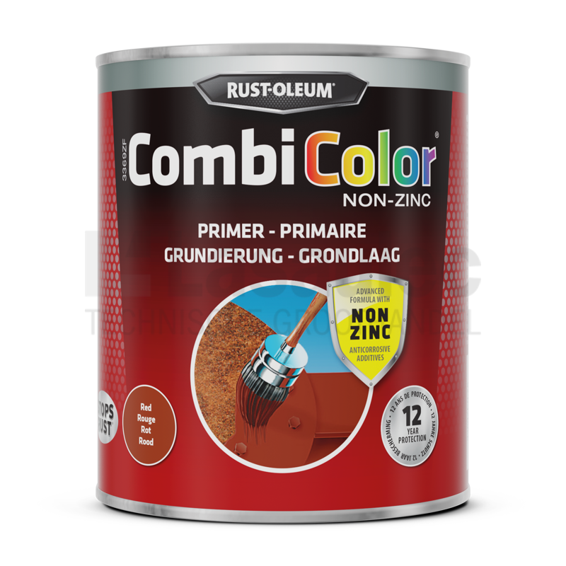 RUST-OLEUM CombiColor Non Zinc Primer wordt gebruikt op blanke of licht geroeste staaloppervlakken om bescherming te bieden tegen corrosie. RUST-OLEUM CombiColor Non Zinc Primer is speciaal bedoeld om met de kwast aangebracht te worden en kan ook met roller of verfspuit aangebracht worden. RUST-OLEUM CombiColor Non Zinc Primer kan overschilderd worden met