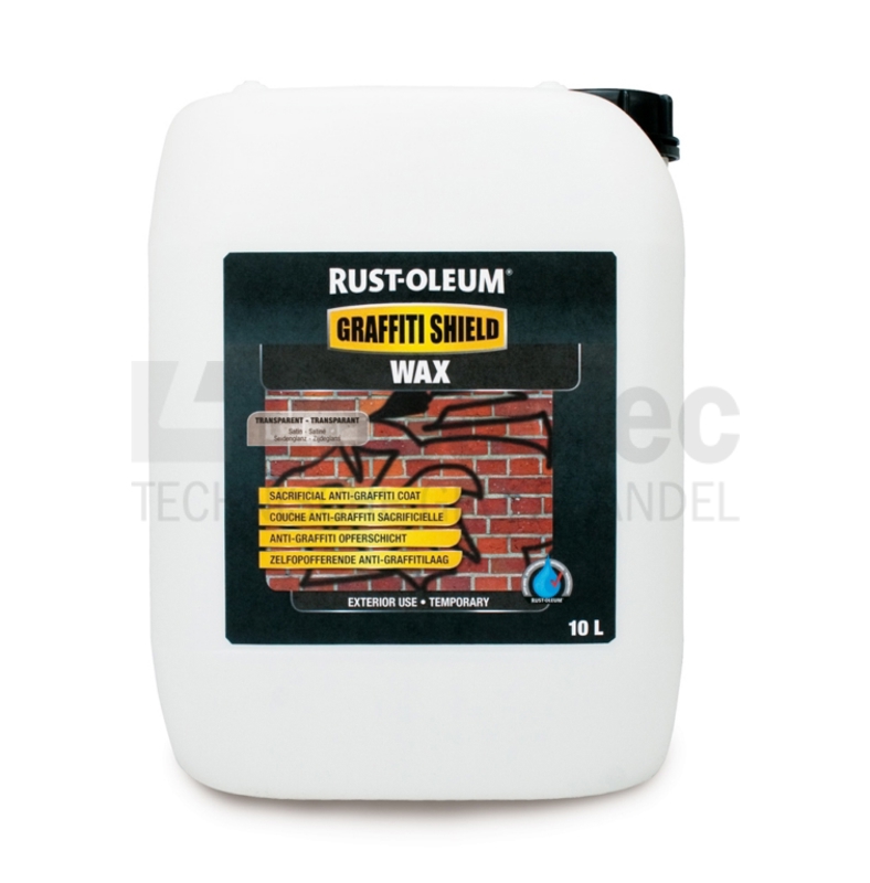 GraffitiShield WAX is na uitharding zeer resistent tegen vele soorten inkten en verf - graffitikan zeer eenvoudig worden verwijderd met warm water - na verwijdering van de graffiti dientmen de gereinigde plekken opnieuw van GraffitiShield WAX te voorzien, zodat het behandeldeoppervlak na de uithardingsperiode weer tegen een eventuele volgende graffiti-actie wordtbeschermd.