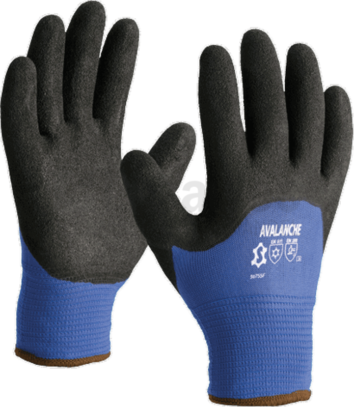 Naadloze polyester winterhandschoen met een zwarte nitril sandy finish coating. De handschoen heeft een acryl voering, en biedt bescherming tegen kou en is geschikt voor zwaar werk in een vochtige omgeving.