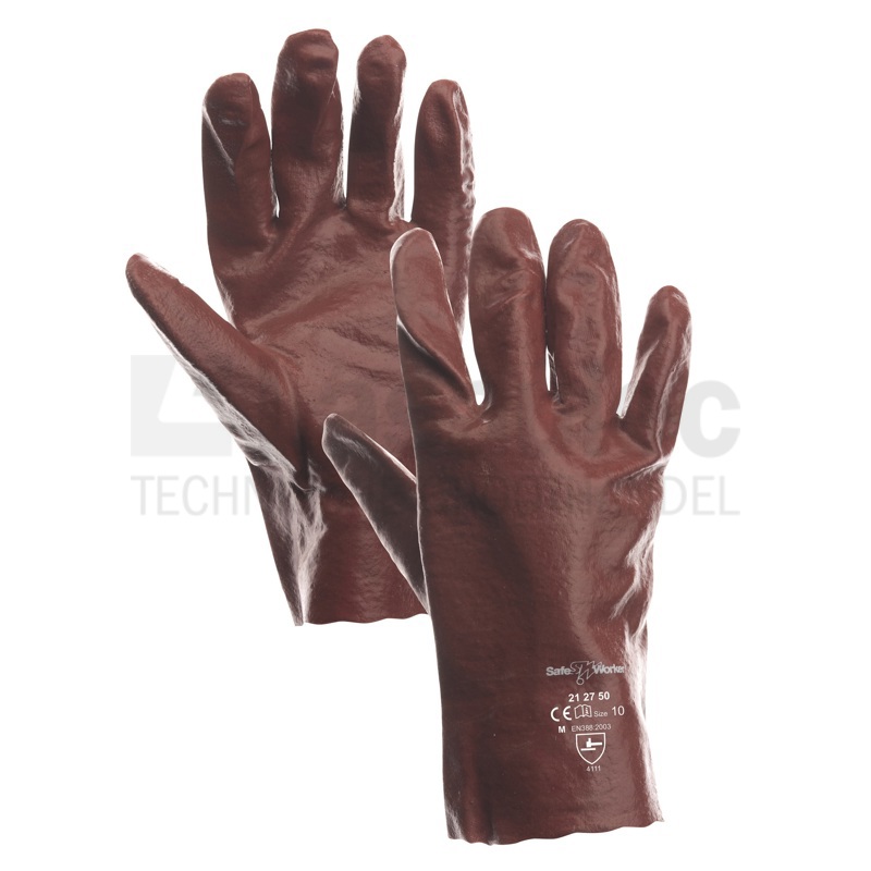 Vloeistofdichte handschoen voorzien van polyester drager en PVC coating. Uitstekende slijtweerstand.