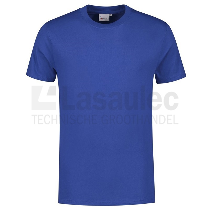 T-shirt, unisex, rondgebreid (zonder zijnaden), voorzien van een ronde hals, korte mouwen, dubbele ribkraag en nektape van schouder tot schouder.
