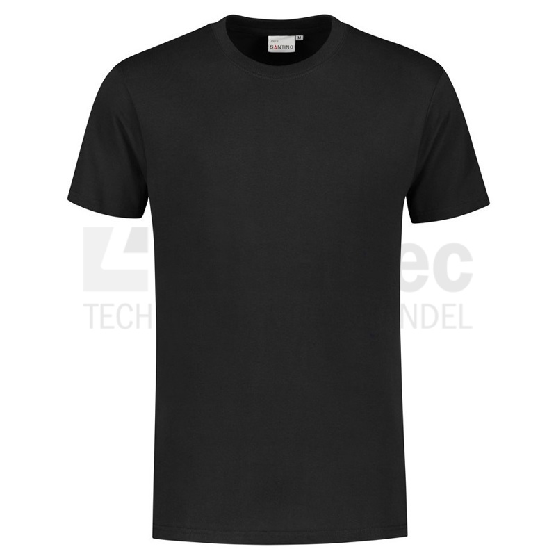 T-shirt, unisex, rondgebreid (zonder zijnaden), voorzien van een ronde hals, korte mouwen, dubbele ribkraag en nektape van schouder tot schouder.