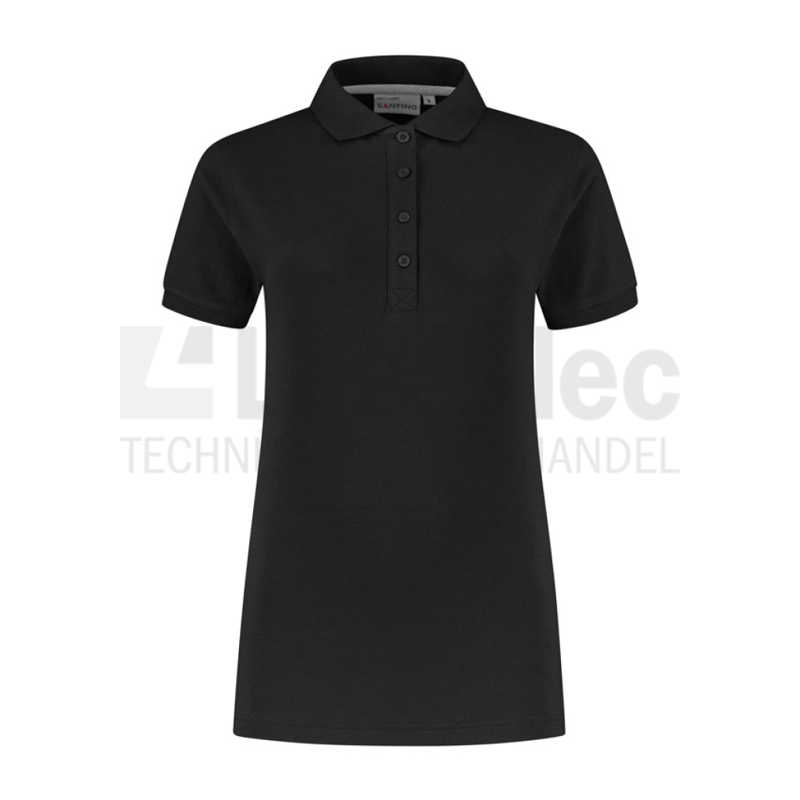 Poloshirt, 60% katoen / 40% polyester, 210 gr/m², piqué, ladies fit met polokraag en 4-knoopsluiting, mouw met ribboord, splitjes in zijnaad en verlengd achterpand. (Dark Grey en Sport Grey zijn melange).