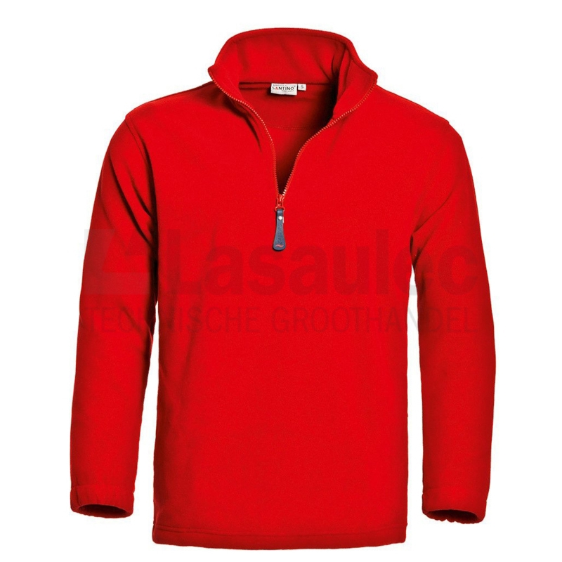 Fleecesweater voorzien van een opstaande kraag met ritssluiting, twee steekzakken met rits, rechte onderzijde met elastisch aantrekkoord en stoppers.