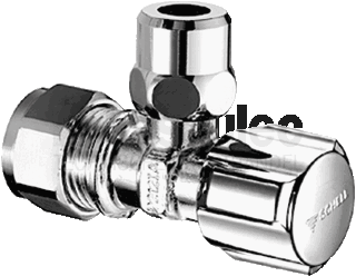Schell Comfort stopkraan voor sanitaire toestellen, chroom, maat aansluiting aanvoer 12mm, maat afgaande aansluiting 10mm, haaks, aansluiting aanvoer knelring, afgaande aansluiting knelring, kraan messing.