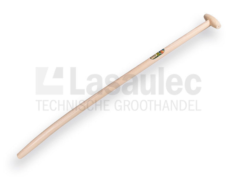 Schopsteel ATLAS van Essenhout, gebogen T-steel in lengte 120 cm, met sterke doorgestoken hilt. Een schopsteel wordt vaak gebruikt samen met een steekbats, betonschop, schepbats, of een kabelschop.