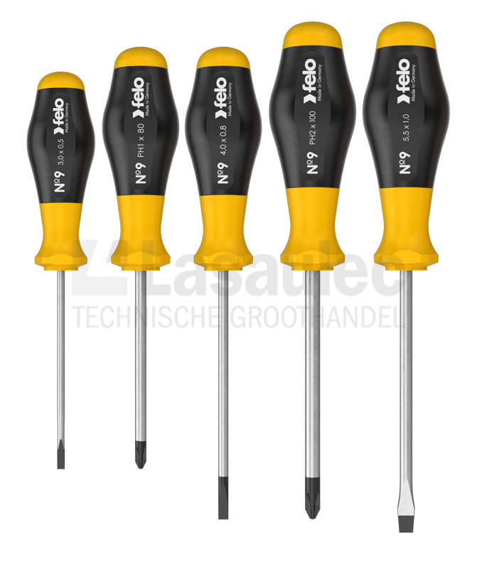 Felo schroevendraaier set bestaande uit SL: 3,0x80 / 4,0x100 / 5,5x125 en PH: PH1x80 / PH2x100.