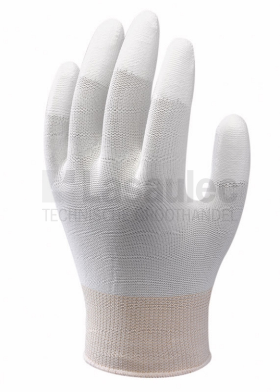 Lichte, elastische, pluisarme handschoen voorzien van beschermde vingertoppen tegen olie en kleine snijwonden en er blijven geen vingerafdrukken achter op gebruikte voorwerpen. Geen irritatie door naden die in contact komen met de huid.