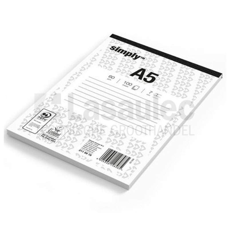 Dit blok met 100 gelinieerde vellen is gebonden aan de bovenkant. Zo kunt u makkelijk pagina's omslaan om verder te gaan met notities maken. Het handige A5 formaat maakt het makkelijk om het schrijfblok mee te nemen. Het is voorzien van een kartonnen kaft, zodat uw aantekeningen zijn beschermd tegen lichte vervuiling.