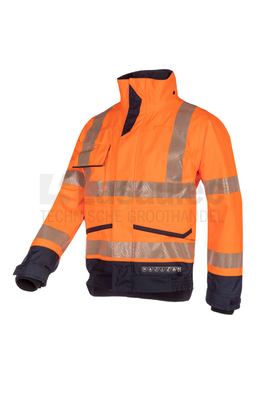 De Frovik is een blouson die je in veel situaties kunt dragen. De fluorescerende kleur en de gesegmenteerde banden houden je veilig in alle lichtomstandigheden. De Siopor Excell stof beschermt u tegen de regen en tegen vele industriële gevaren zoals de thermische risico's van een elektrische vlamboog. Een pluspunt is het lage gewicht van deze stof. Bij de blouson hoort een uitneembare vlamvertragende fleece voering (index 3). De wind wordt verder buitengehouden door de elastische polsbanden die vernauwd kunnen worden en door de rechtopstaande kraag waar een kap aan bevestigd kan worde
