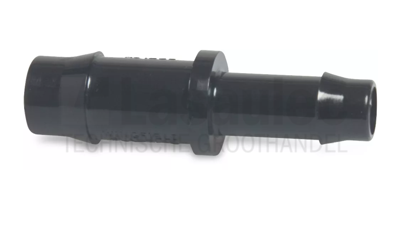 Slangverbindingspijp geheel vervaardigd uit nylon, voorzien van dubbele tule aansluiting.