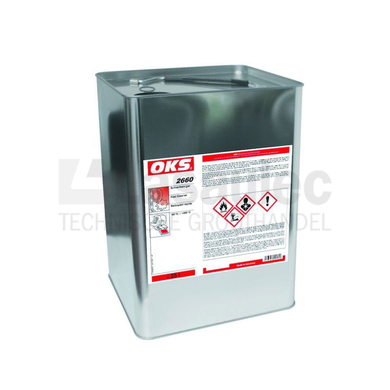 OKS 2660 Snelreiniger (25 ltr can) is een krachtige reiniger‑ontvetter bedoeld voor professioneel gebruik op machines en onderdelen. Hij verdampt vrijwel zonder residu, wat zorgt voor schone oppervlakken zonder nabehandeling.