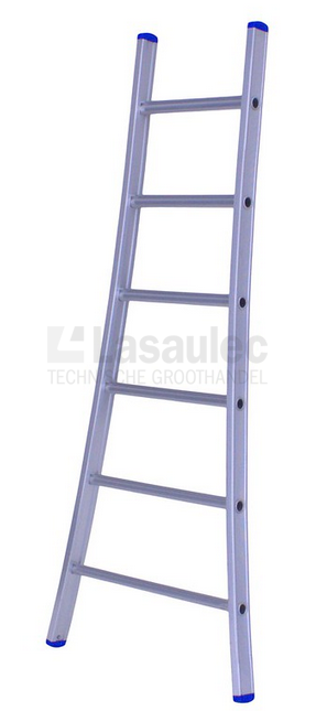 Enkele ladder met uitgebogen voet. Extreme buitentemperaturen worden gedeeltelijk geneutraliseerd door de polyester coating, die tevens voor minder vuile handen zorgt. VGS en Warenwet gekeurd.