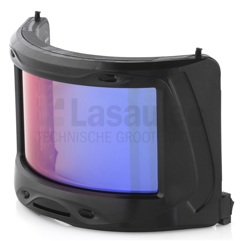 Tot nu toe zijn automatische verduisteringsfilters altijd plat geweest. Als je een groter gezichtsveld wilde, had je een grotere helm nodig met voldoende ruimte daarvoor. Omdat de gebogen cassette rond het gezicht ligt, is het mogelijk om een groot gezichtsveld (150 mm x 76 mm) in een zeer slank masker te plaatsen. Lichtniveau 2.5, donkere niveaus 8-12. Uitgerust met natuurlijke kle