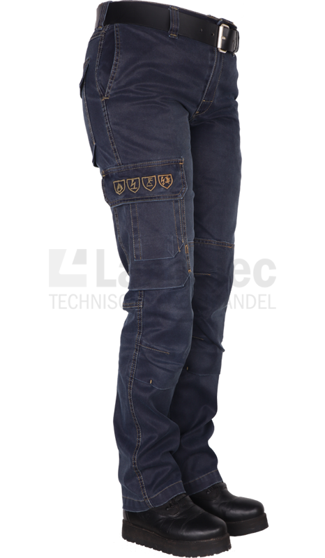 Brandvertragende dames werkbroek met duimstokzak, dijbeenzak, telefoonzak en mogelijkheid voor kniekussens. Gecertificeerde antistatische jeans met lasnorm en vlamboog. De werkbroek is gemaakt van Stretch Denim voor extra comfort en voorzien van een lichte stonewash