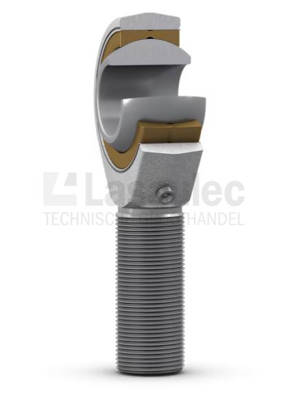 In deze SKF stangkoppen zit een kogelgewrichtslager met een staal/brons glijoppervlak. Het lager vereist onderhoud, afmeting 6 en groter kunnen via een smeernippel in het lagerhuis en via de schacht worden nagesmeerd. De buitendraad is verkrijgbaar met een linkse (voorvoegsel SAL) of rechtse schroefdraad.