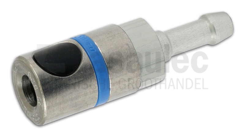 Stäubli RCS perslucht-veiligheidssnelkoppeling, voorzien van binnendraad en drukknopbediening.
