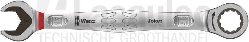 Hoogwaardige, metrische ringratel-steeksleutel van Wera: Alles wat een sleutel moet kunnen. En nog veel meer. Sneller, beter, mooier. Kortom: een echte Joker. De nieuwe generatie steek-ringratel-sleutels. Voor zeskant-schroeven resp. moeren. Met vasthoudfunctie via metalen plaat in bek, om het verliezen van schroeven en moeren te reduceren. De verwisselbare metalen plaat in de bek houdt met extra harde tanden schroeven en moeren en verkleint het risico op wegglijden. De geïntegreerde eindaanslag voorkomt het wegglijden naar beneden van de schroefkop en maakt hoge draaimomenten mogelijk. De intelligente dubbele zeskant-geometrie zorgt voor een sluitende verbinding met schroef of moer en reduceert zo het risico op wegglijden. Dankzij de terughaalhoek van slechts 30° behoort het tijdrovende omkeren van de sleutel tijdens het schroeven tot het verleden. Ratelmechanisme aan ringzijde met uiterst fijne vertanding (80 tanden) voor flexibiliteit, ook op plekken waar weinig plaats is. De speciale smeedvorm maakt overdracht hoge draaimomenten mogelijk en geeft het geheel een hoge buigstijfheid. Gemaakt van sterk chroom-molybdeen staal met nikkel-chroom coating voor een hoge bescherming tegen corrosie. Met 'Take it easy'-Toolfinder: Kleurcodering op grootte.