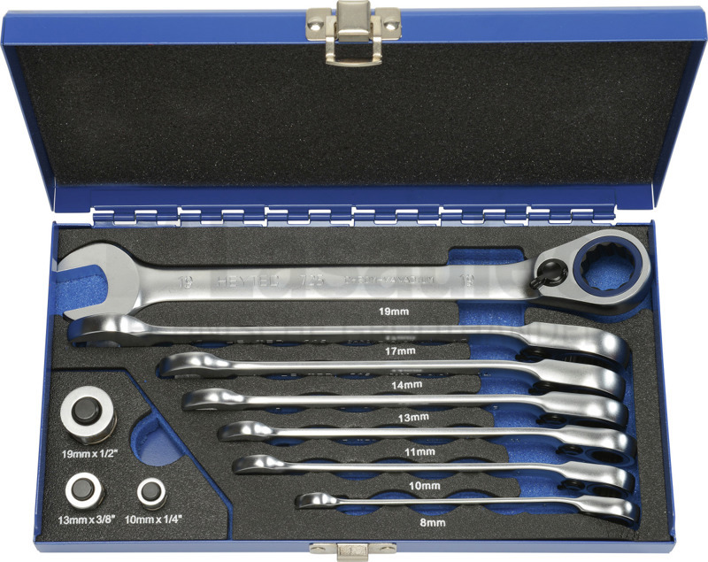 Steekringratelsleutelset HEYTEC 725-6005 omschakelbaar 10-dlg.
