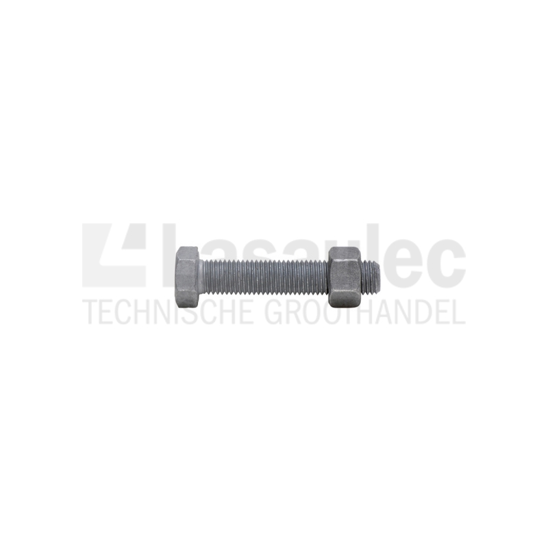 Zeskantbout ISO 4017 en zeskantmoer ISO 4032 volgens EN 15048 SB, voorzien van metrisch schroefdraad.