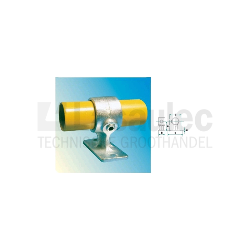Dit type buisklem is ontworpen om buizen op een vaste afstand langs een wand te bevestigen. De buis gaat door de koppeling en kan niet in de koppeling doorverbonden worden. De voet is voorzien van twee bevestigingsgaten.