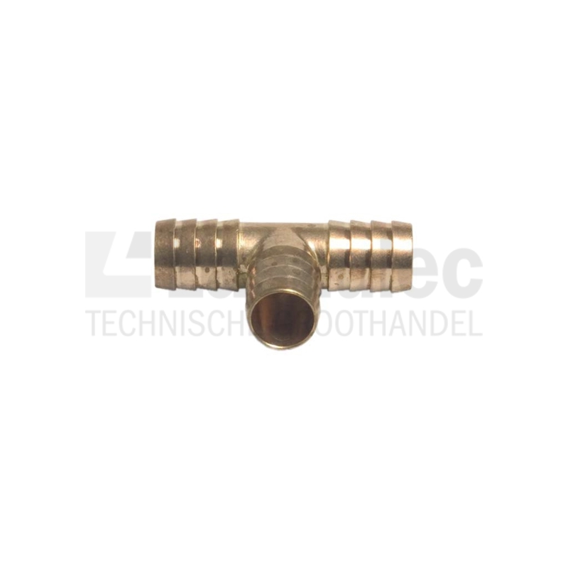 Het T-stuk 90° is gemaakt van messing en heeft slangtule verbindingen.